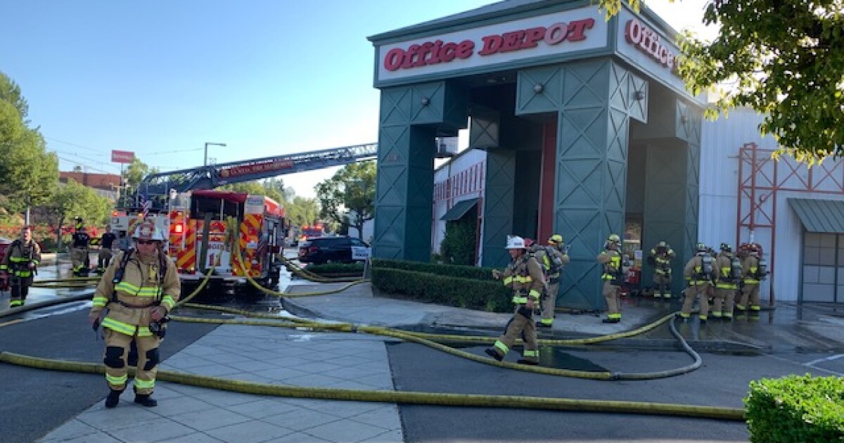San Diego Fire Rescue Crews Battle Flames At Office Depot In La Mesa